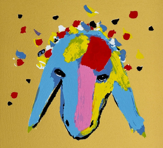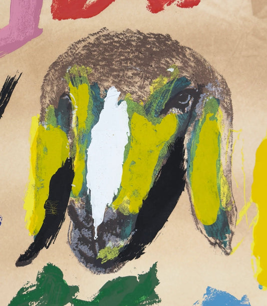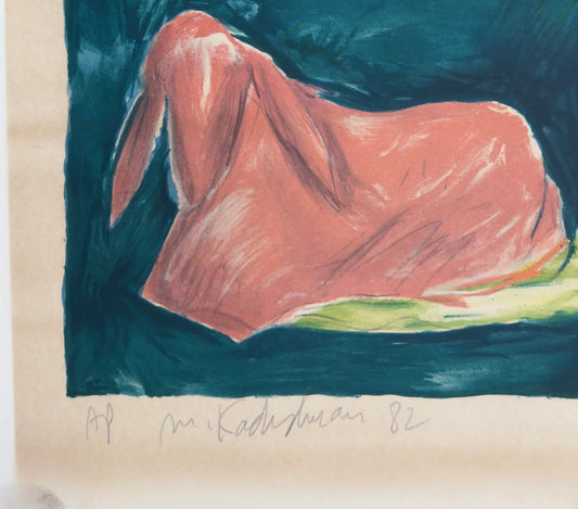 ליטוגרפיה מקורית חתומה ביד - מנשה קדישמן, "כבשה בקומפוזיציה מופשטת" (1982)