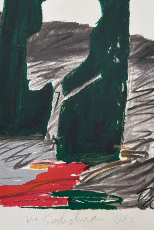 ליטוגרפיה נדירה חתומה ביד - מנשה קדישמן, "שני שערים בנוף" (1982)