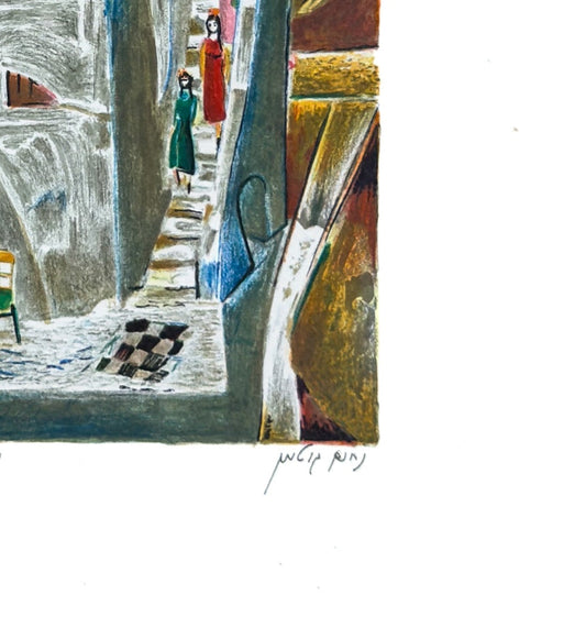 נחום גוטמן - ״רחוב בנווה צדק״ ליטוגרפיה חתומה וממוספרת במהדורה מוגבלת