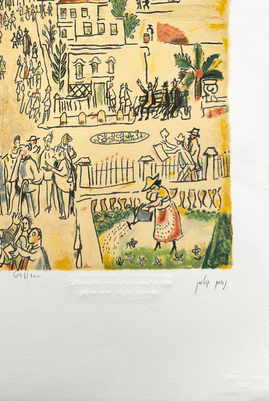 נחום גוטמן - ״יום חג בפרדסי יפו״ - ליטוגרפיה חתומה וממוספרת